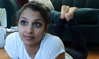 Cute dark skin Indian torrid babe stretching her legs on cam