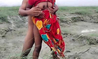 indyjski kobieta ubrana w tradycyjny strój dostaje przejebane w jej usta i cipki na wolnym powietrzu