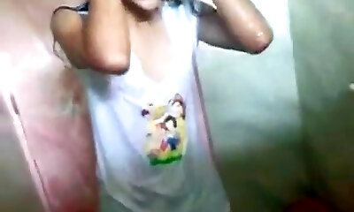 Desi Indian Teen Girl Bathing Outdoors, Showing Natural Giant Boobs