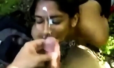 Indian girl taking an outdoor facial cumshot