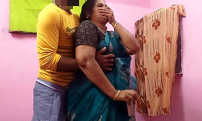 A stepmother wearing a saree She was hide seeing me masturbating while watching porn video