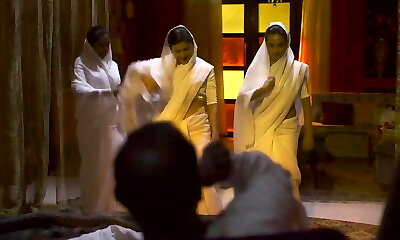 Lucky Indian fellow gets his dick sucked by busty sweeties Nadia Night and Miya Monroe